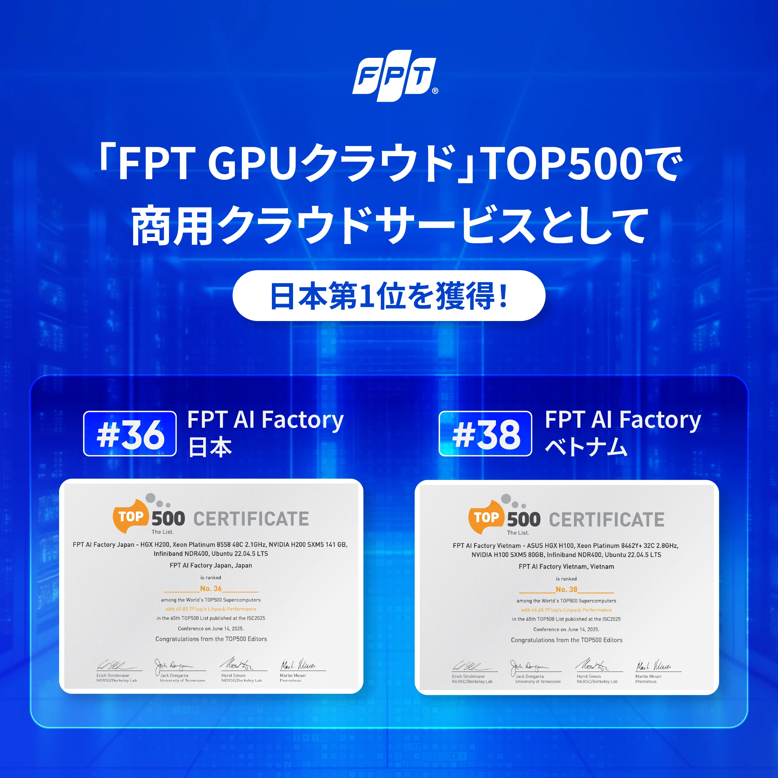 「FPT AI Factory」が世界の最速スーパーコンピュータTOP500に選出、商用クラウドプロバイダーとして日本第1位を獲得
