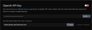 Figure 4: Configuring API Key and Base URL in Cursor IDE