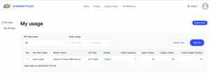 • Go to My Usage on FPT AI Marketplace.